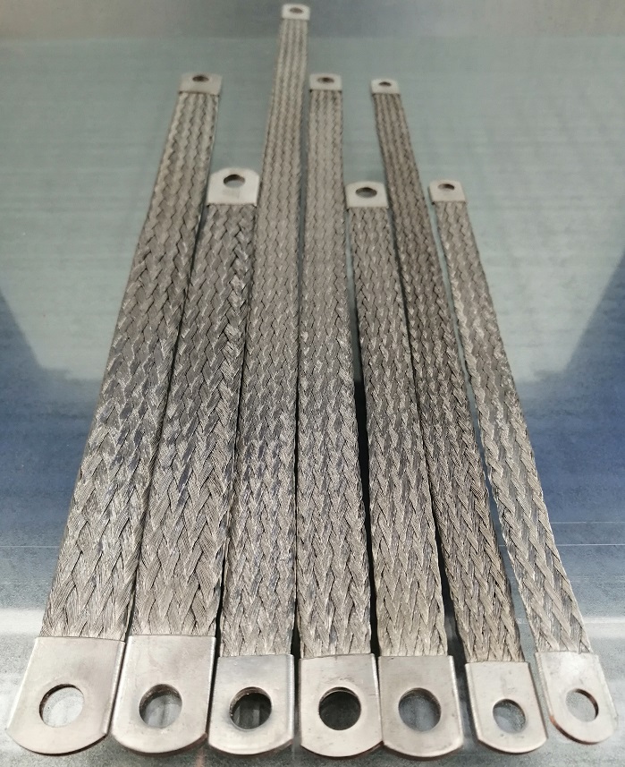Masseband Kupfer verzinnt, 10mm² Länge 150mm / 200mm / 300mm von Lochmitte zu Lochmitte | Masseband Kupfer verzinnt, 10mm² Befestigungsbohrung 6,5mm, Breite 14mm, Einzeldrahtstärke: 0,20mm, VPE: 50Stück |