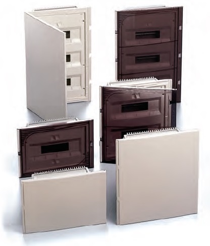 Unterputz Einbau Verteiler 2-reihig 28TE 2x 14TE UP Gehäuse weiß mit Tür in Rauchglasoptik