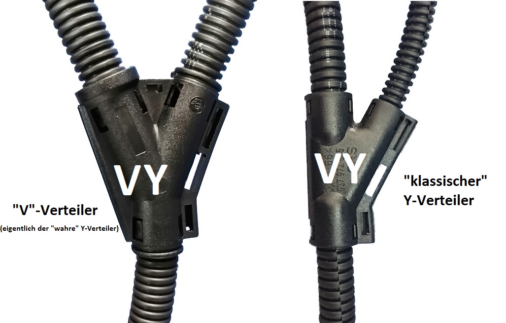 klappbarer YV-Verteiler für Wellrohr NW7,5 - Anschluss NW A-B-C