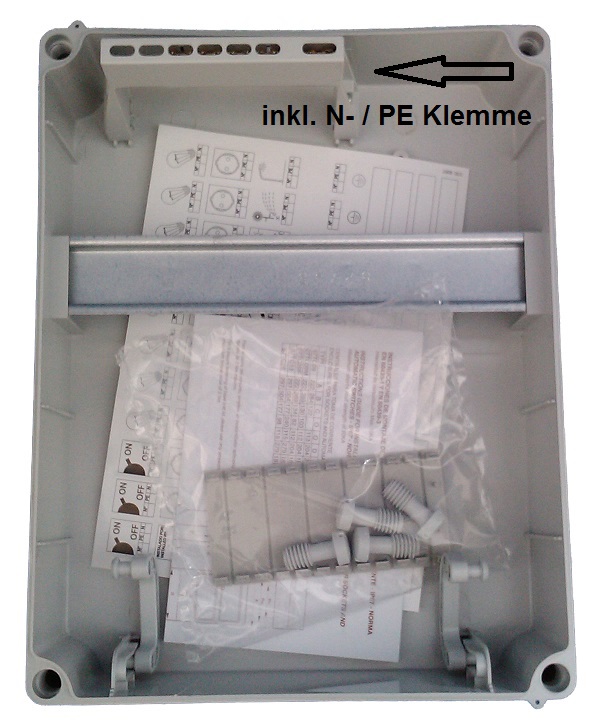 Division: 1x9TE with top hat rail and N- / PE terminal.